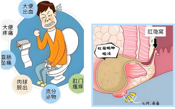 ‼肛瘘:肛门周围形成异常通道,常伴有分泌物和不适感,多由肛周脓肿发展而来。