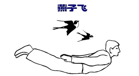 ✅小燕飞:俯卧在床上,以腹部为支点,双臂夹紧尽力向后伸展,同时双腿并拢向上抬起,身体像一直飞翔的燕子。