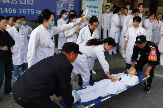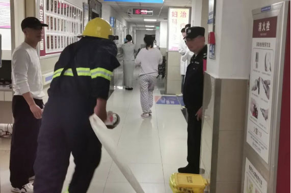 本次演练模拟四楼病区突发火情。四楼护士站一名护士发现险情后,立即呼救并向保安科刘峥科长及总值班汇报。